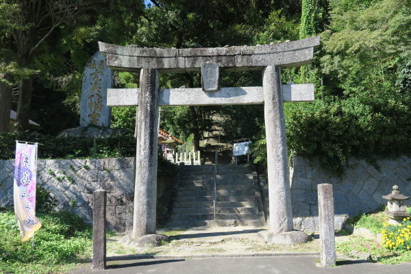 幣帛料供進指定社、前原市大字川付七八七、長嶽山上に鎮座、當社は別名長野八幡宮とも稱す。上宮並びに本宮がある。共に長嶽山上に鎮座す。社殿、幣殿、拝殿、参篭所、《神輿》庫、社務所、宝蔵備わり、老樹がうっそうと茂り真に幽邃の神域である。上宮は周囲四十五間の丸塚型山陵であって、山頂に石祠がある。上宮の祭神は、仲哀天皇と言い伝える。 当社の縁起によれば、神功皇后の摂政元年、大臣、武内宿祢に命じて香椎の宮に安置していた先帝の御棺を当山に飲めて陵を築かせたとあり、蓋し三韓渡航の間の仲哀天皇御殯斂の地であったのだろうか?