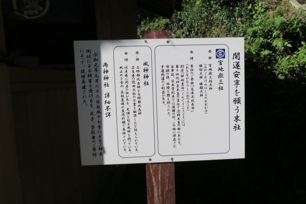 境内社 金刀比羅神社、風神神社、生目神社、宮地嶽神社、両神神社、和多積神社、猿田彦神社