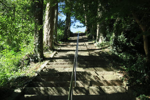 境内は三千百余坪、長野川の清流に臨み、百余の石磴長く連なり参詣者も襟を正す神域で ある。