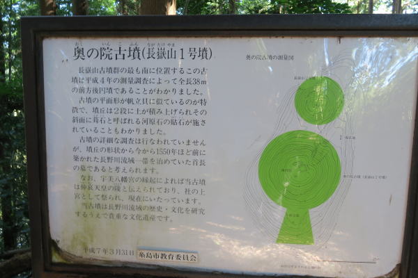 長嶽山(ながたけやま)の山頂にある神社で、長野八幡宮とも呼ばれています。奈良・平安時代は大きな神社で、7日間の祭礼が行われていました。明治維新の際に長野、川付、飯原小蔵(白糸)、四ヶ村(長野庄)の氏神社となり、明治5(1872)年に郷社、大正12(1923)年に県社に指定されました。