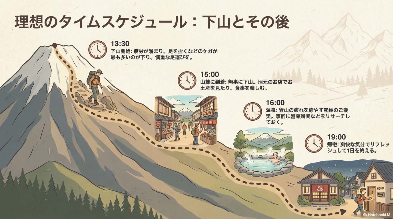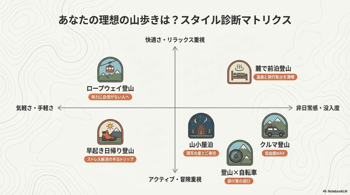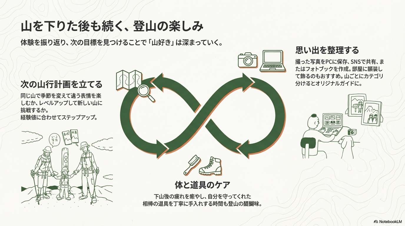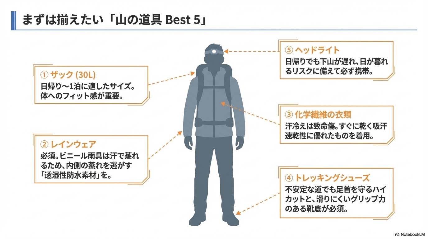 日帰り登山を計画する際、特に重要なポイントは「無理のない山選び」と「逆算でのスケジュール作成」です。主なポイントを以下にまとめました。