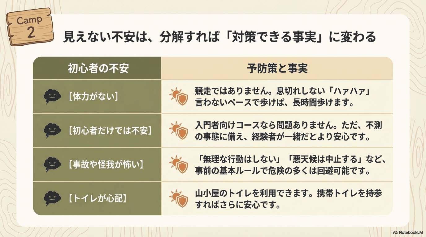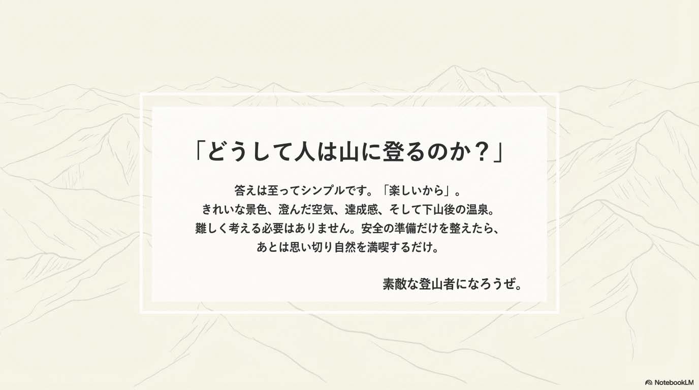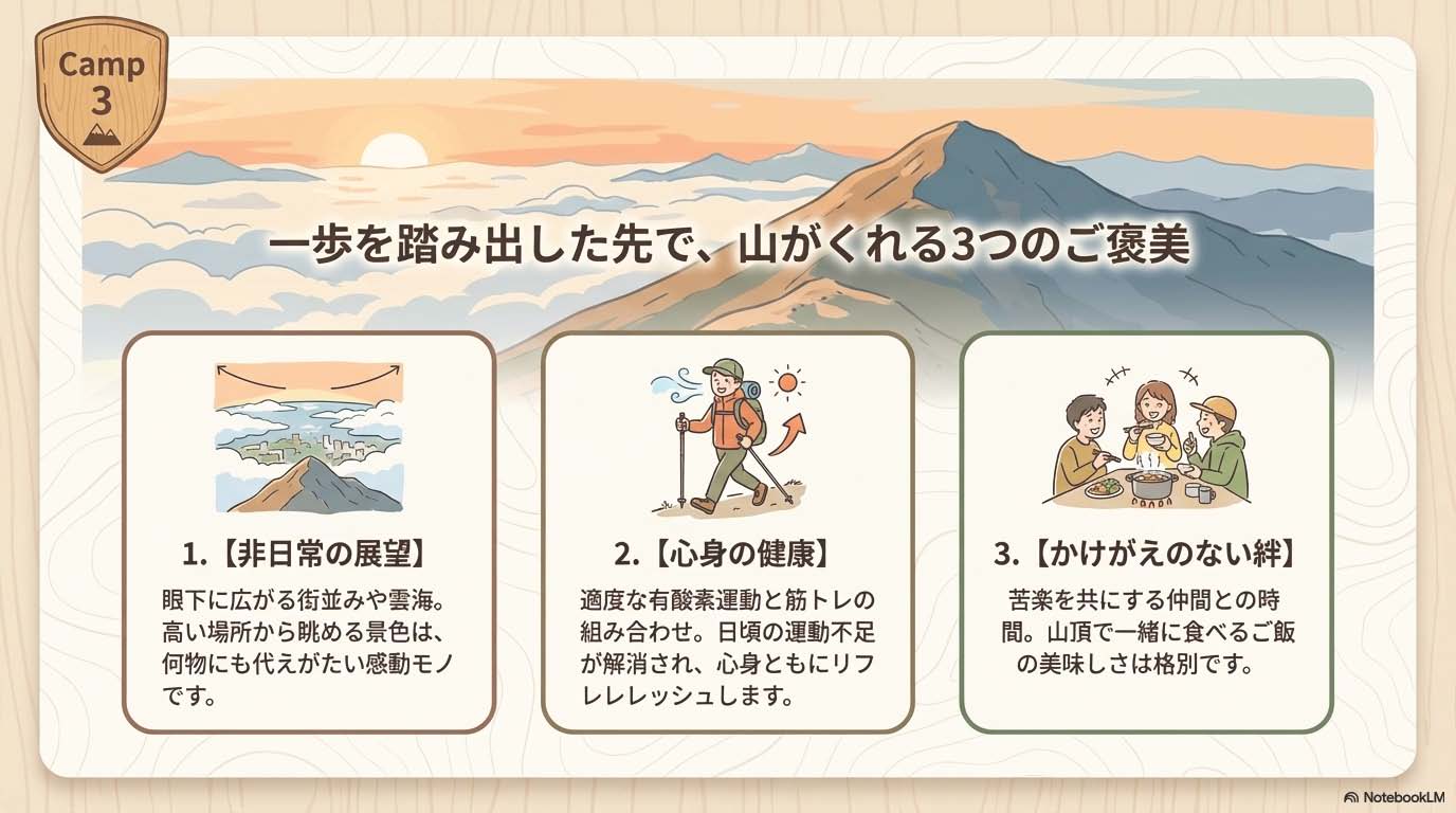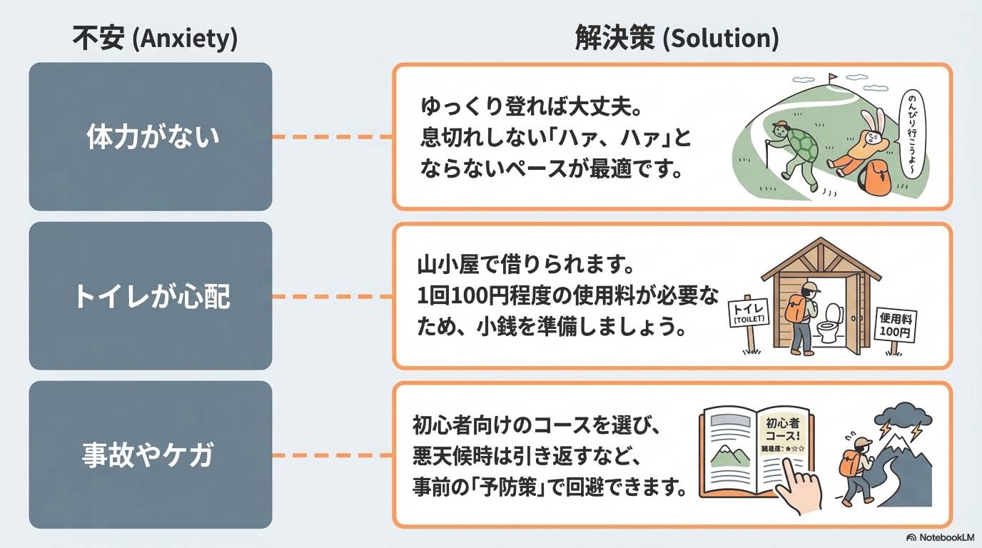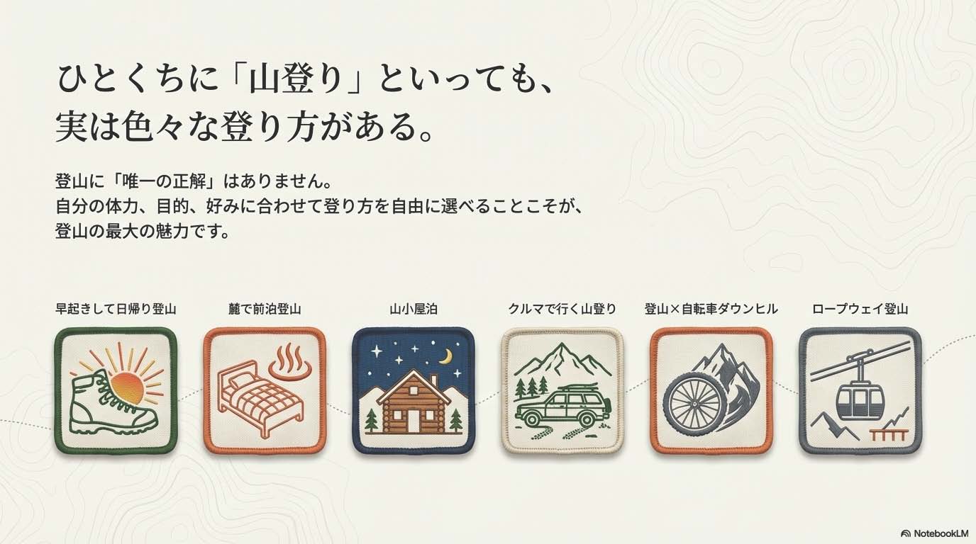 日帰り登山を計画する際、特に重要なポイントは「無理のない山選び」と「逆算でのスケジュール作成」です。主なポイントを以下にまとめました。