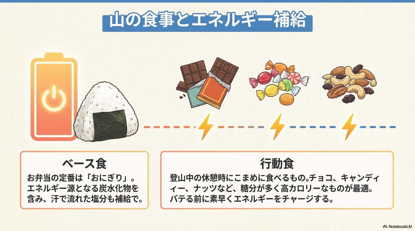 日帰り登山であっても、下山が遅れて日が暮れてしまう危険性があるため必ず携帯する必要があります。消灯後の山小屋でトイレに行くときなどにも役立ちます。