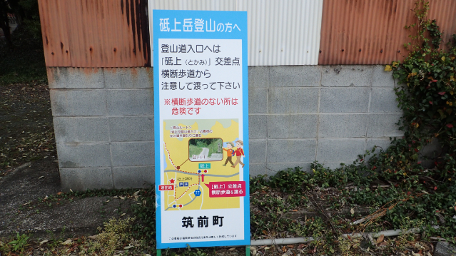 登山や散策に行かれる場合は、登山口の砥上神社(福岡県朝倉郡筑前町砥上980-1)を目指して行くとスムーズです。駐車場は神社の境内に数台分用意されています。
