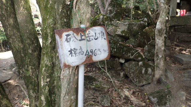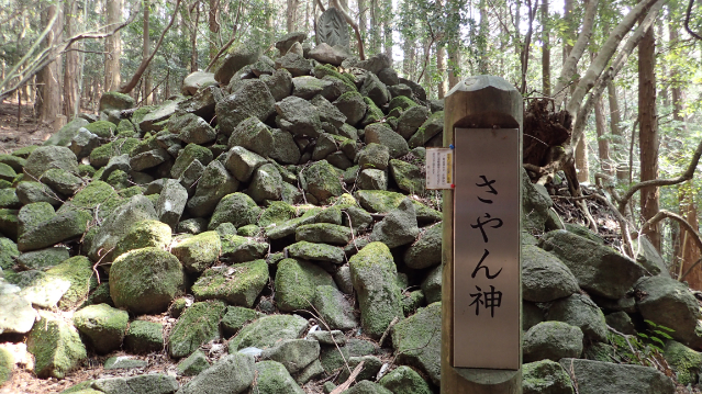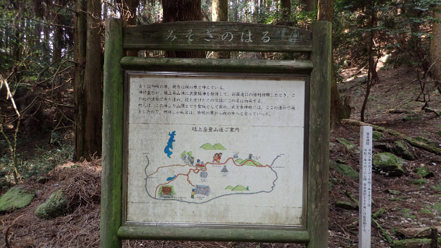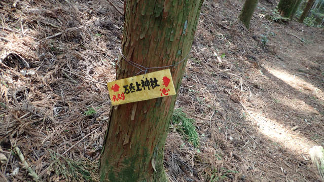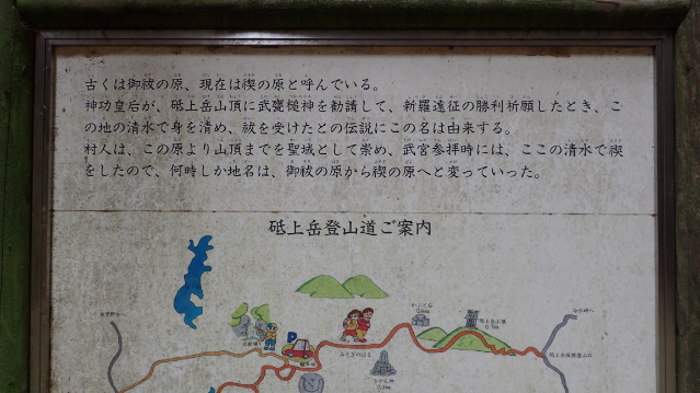 | コース | 砥上神社 ⇨ 登山口 ⇨ ひづめ石 ⇨ みそぎの原 ⇨ さやん神 ⇨ かぶと石 ⇨ 砥上岳山頂 ⇨ 分岐 ⇨ 観音塚古墳 ⇨ 分岐 ⇨ 登山口 ⇨ 砥上神社 |